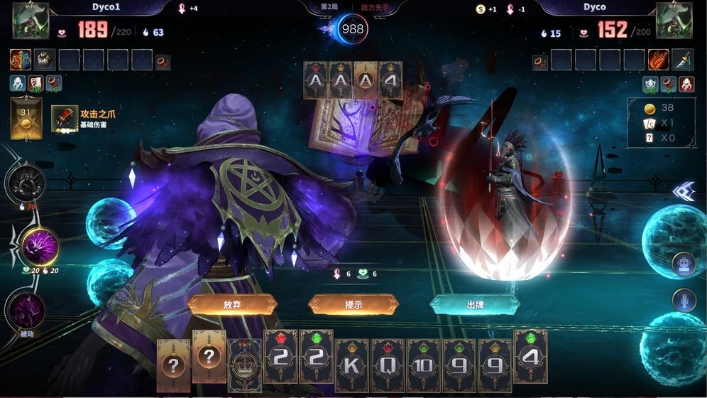暗牌:当自己手中有三张同牌并且可操作手牌时,则可以暗牌。